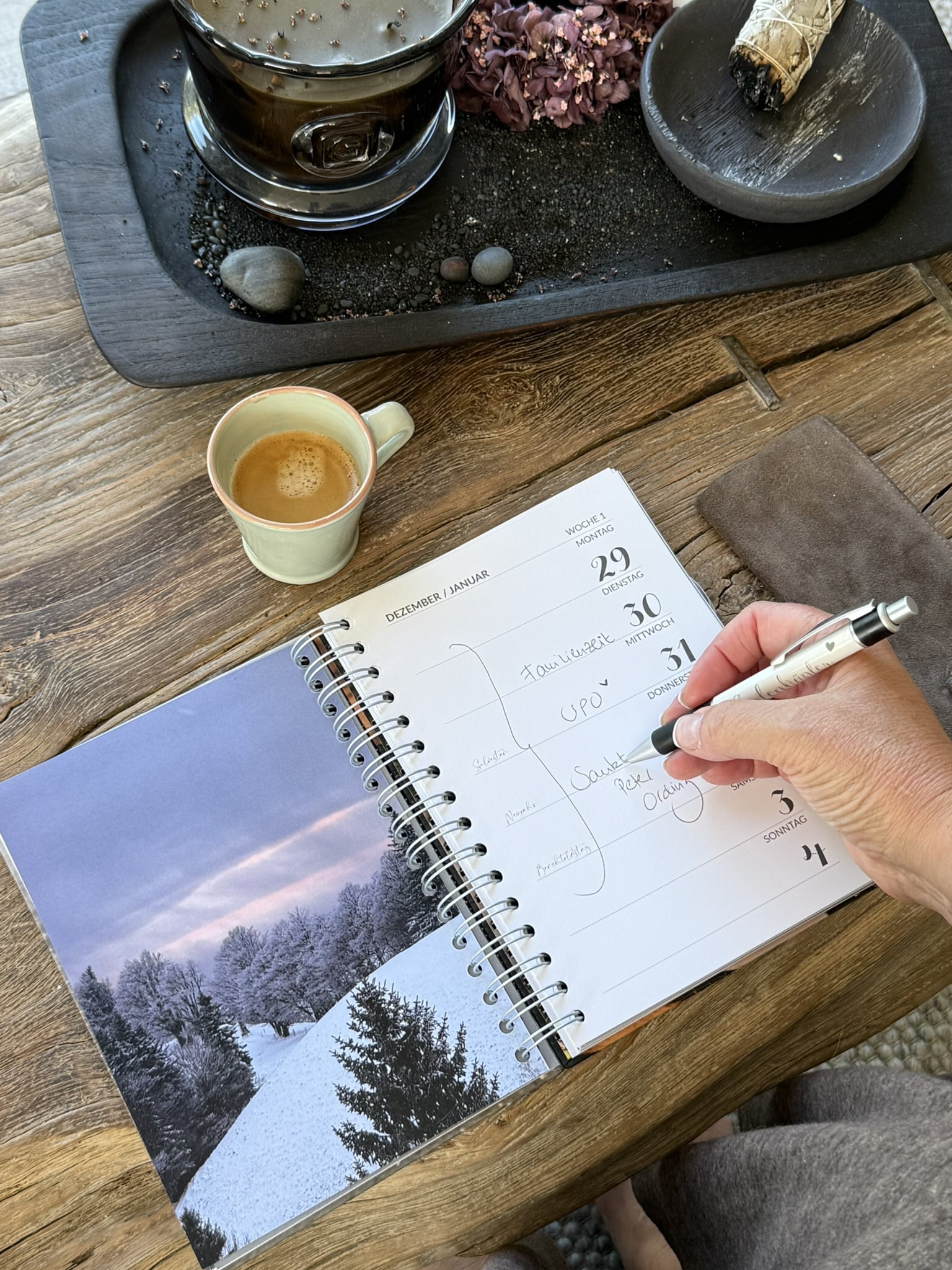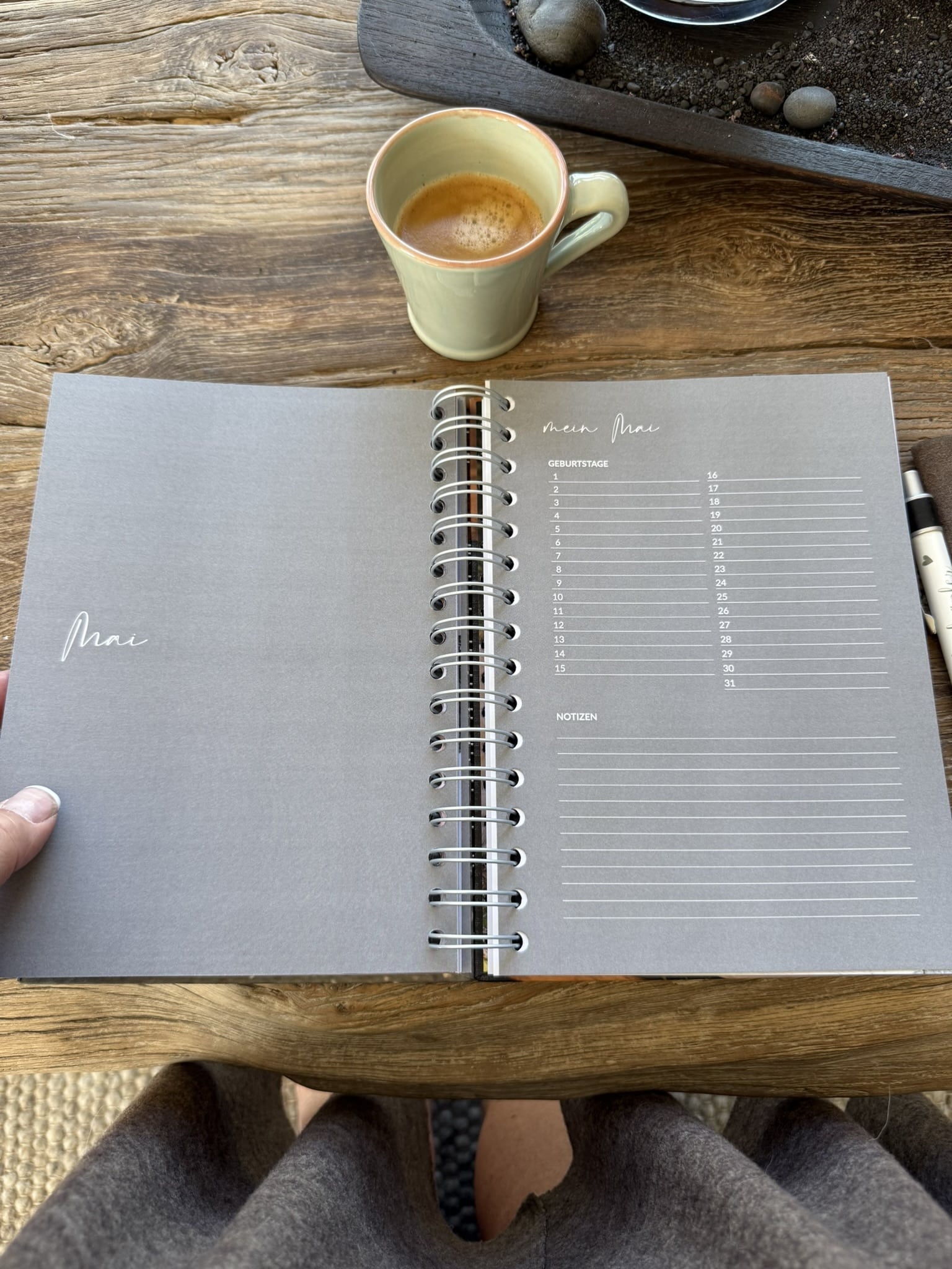 – mit praktischem Rücken mit Spiralbindung, damit die Agenda ganz aufgeklappt werden kann und komfortabel reingeschrieben werden kann.