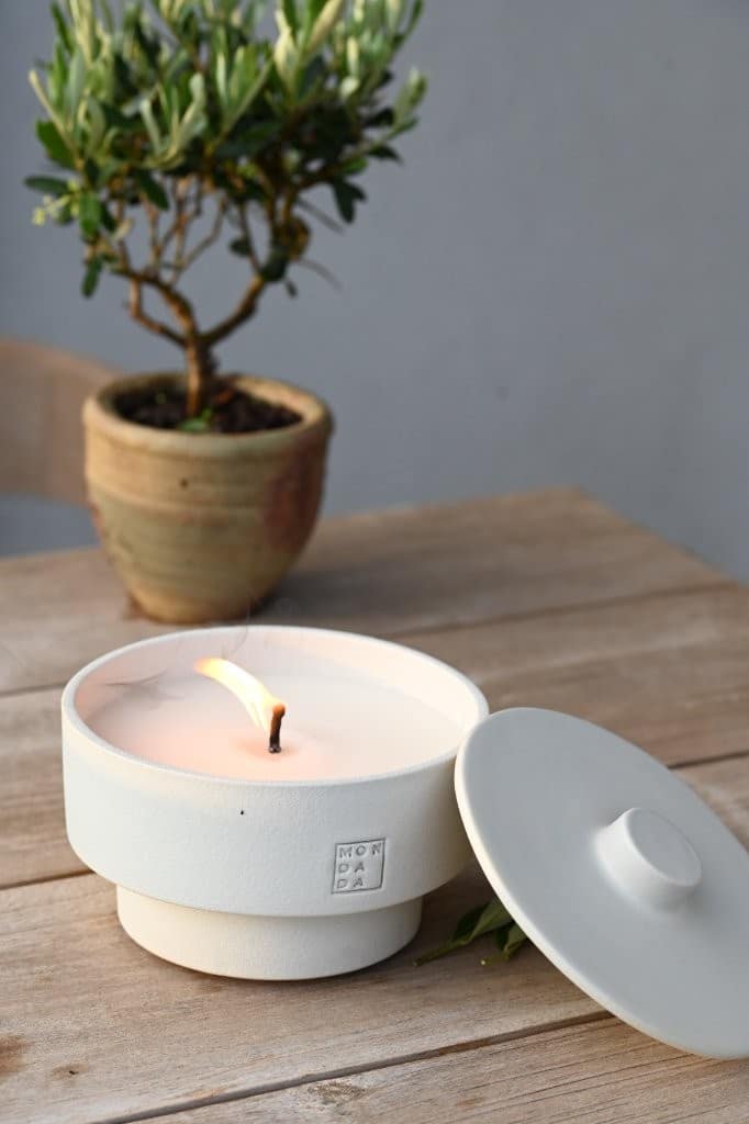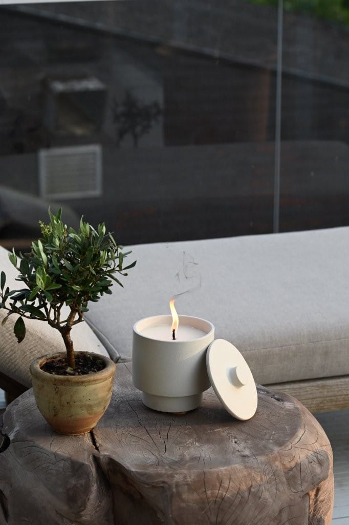 Diese handgefertigte Kerze aus reinen, natürlichen Zutaten hat ein modernes Design und einen neutralen Duft, der sie perfekt für jeden Außenbereich macht. Sie verleiht Ihrem Außenbereich einen Hauch von Eleganz und Gemütlichkeit.