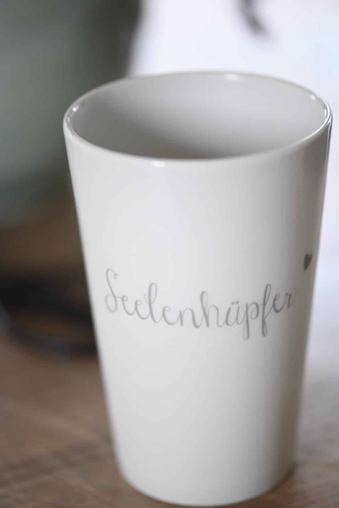 Keramik Tasse mit Schriftzug Seelenhüpfer, ohne Henkel